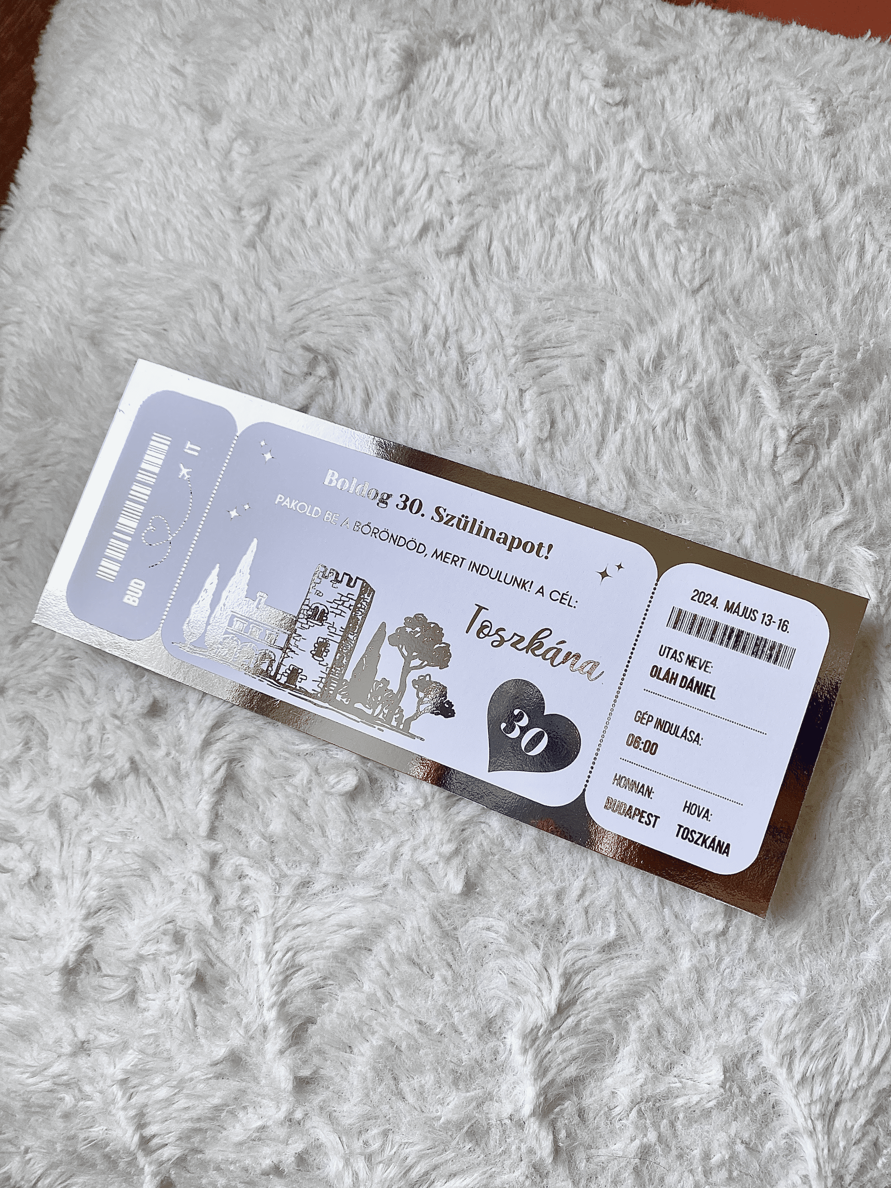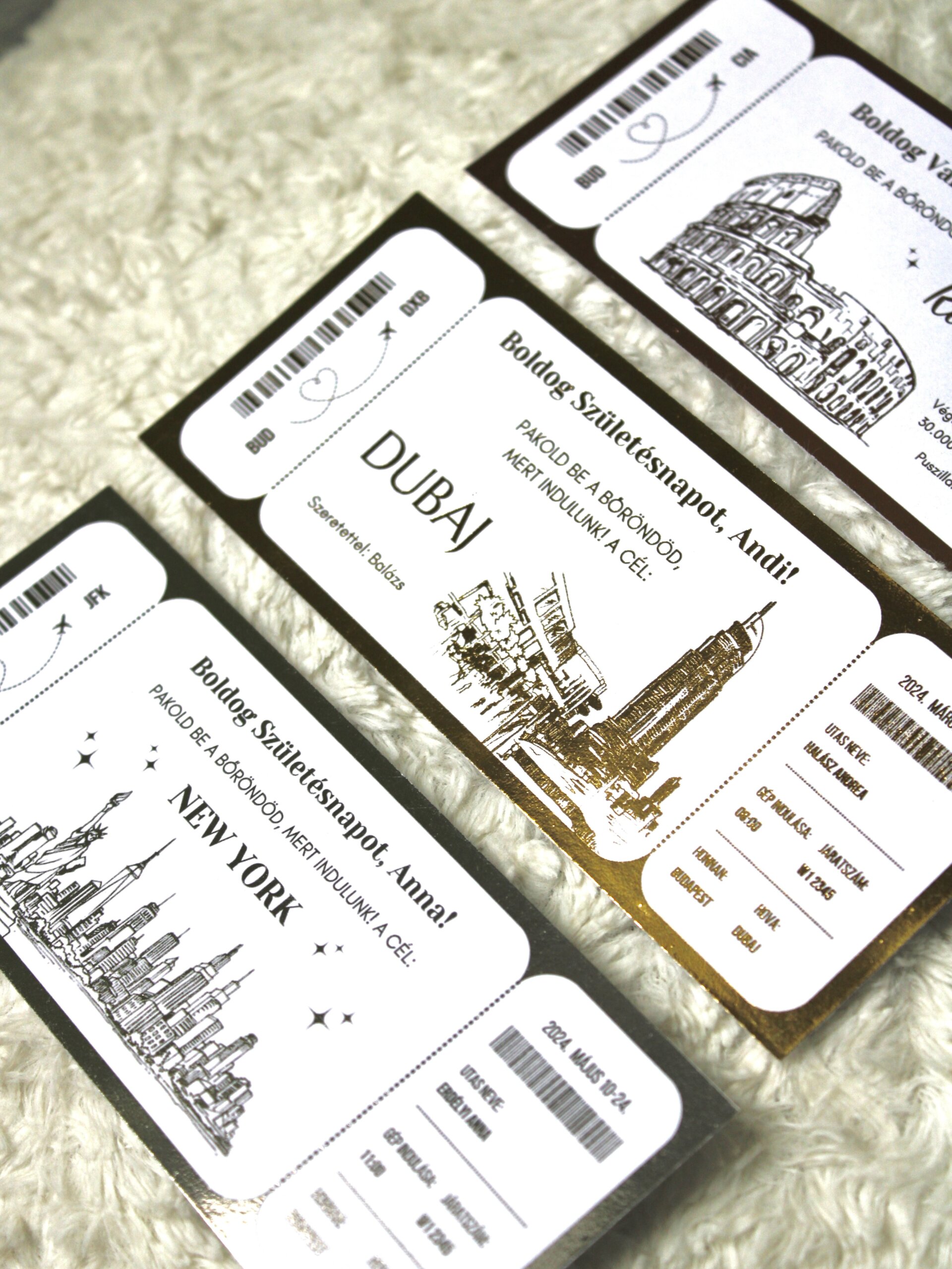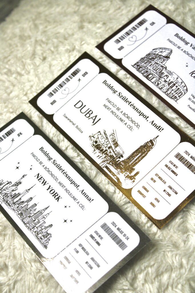 Nálunk nincsenek sablonok – minden kártya teljes mértékben személyre szabottan készül! Legyen szó koncert- vagy színházjegyről, repülőjegyről vagy bármilyen élményről, pontosan azt valósítjuk meg, amit elképzeltél. Egy igényes, tartós emléket kaphatsz, amellyel örömet szerezhetsz szeretteidnek.